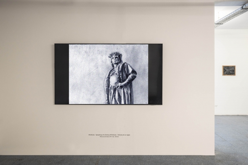 Tristes presentimientos de lo que ha de acontecer, acto I y acto II (det.), 2022, pencil frottage on paper, dimensions variable, installation view at Espacio Proa21